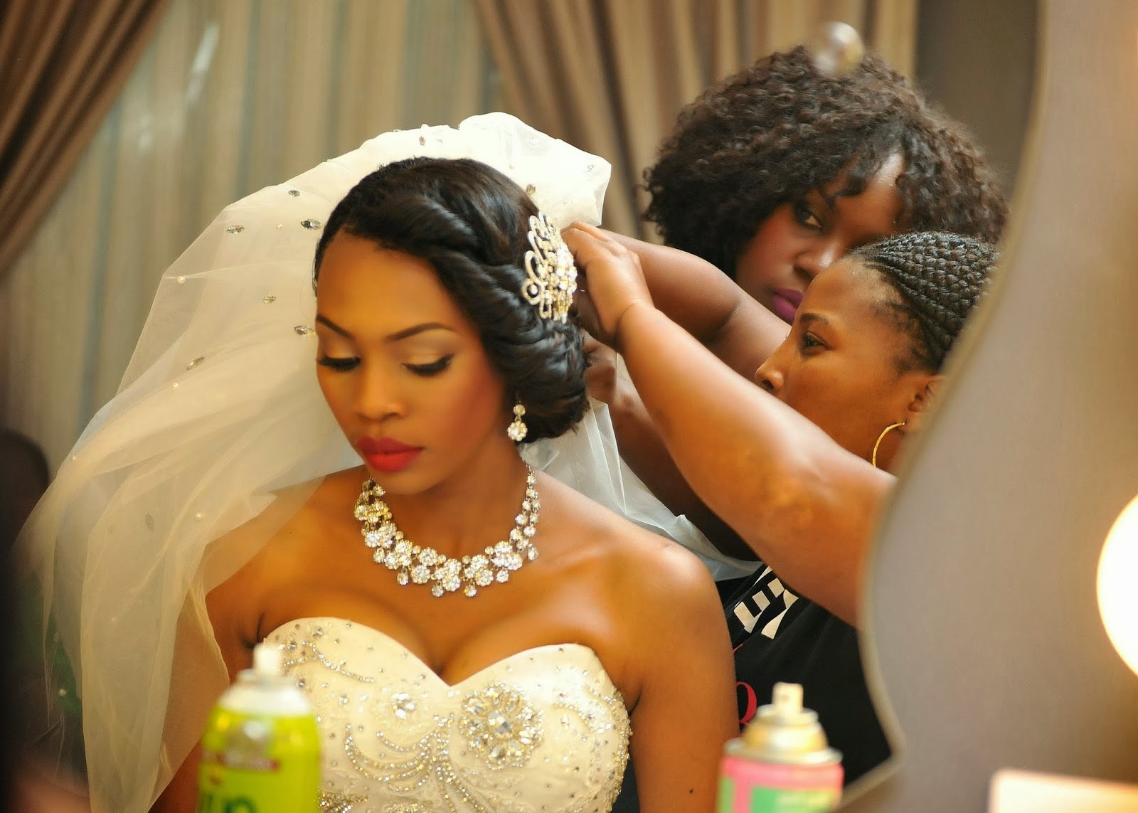 Hellen had her send off and wedding Glam with us,without forgetting her engagement party Glam. She is a beautiful lady with poise and grace,very elegant and charming. She has amazing features on that gorgeous face of hers. And from her head to toe wedding outfit its obvious she loves BLING...so much that she instructed us to add some bling bling to her cascading bouquet.